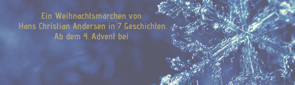 Das Märchen „die Schneekönigin“ besteht aus sieben Geschichten, die zusammengehören. Ich veröffentliche daher die ganze Weihnachtswoche lang, ab dem vierten Advent, jeden Tag eine Geschichte aus dem Märchen. – Überall, wo es Podcasts gibt und auf meiner Blogseite „Podcast“.