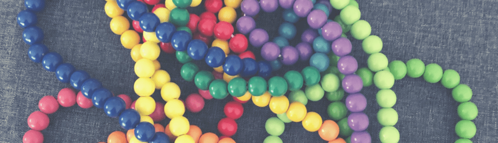 Wenn Du also die Kette selbst basteln möchtest, brauchst du 365 Perlen in 12 verschiedenen Farben. Idealerweise spiegeln die Farben die Monate – wie auch auf dem Jahreszeitentisch – bzw. die Jahreszeiten wider. Bei meiner Kette sieht das so aus: