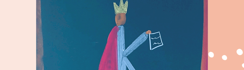 - Am nächsten Tag wird die Geschichte mit eigenen Worten wiederholt, die Verschen gesprochen und aus dem Anfangsbild der Buchstabe herausgearbeitet. „Wer hat uns das K gebracht?“ – „Der König!“ Die Kinder üben nun die Schreibweise des Buchstabens auf dem Sandtablett, kneten ihn, legen ihn ganz groß mit Seilchen in den Sitzkreis, balancieren dann darüber usw. Auch werden weitere Wörter gesucht, die mit diesem Buchstaben beginnen, ihn enthalten oder auf ihn enden. Laut und Bild werden auf vielfache Weise erlebt. Der Buchstabe wird anschließend groß ins Heft gemalt.