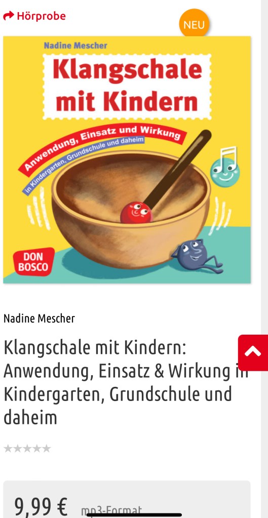 Eine turbulente Woche neigt sich gerade dem Ende zu. Die größte und schönste Überraschung war die Email meiner Lektorin, dass mein neues Hörbuch „Klangschale mit Kindern: Anwendung, Einsatz & Wirkung in Kindergarten, Grundschule und daheim“ zum Preis von 9,99 € frisch veröffentlicht wurde.
