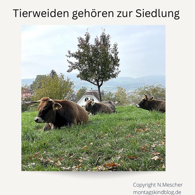 Im Laufe der Jahre wurde immer mehr Wohnraum, auch sozialer Wohnraum, Gäste- und Studentenunterbringungen, geschaffen und architektonisch passend umgesetzt. So kann man heute auf vier verschiedenen Architekturpfaden auf dem „Hügel“ wandern und staunen. Was mir besonders gut gefallen hat, war auch der gemeinsame Raum von Mensch und (Nutz-) Tier. Auf den Grünflächen der Siedlung trifft man Kühe, Schafe und Esel an.