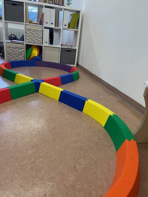 Das Durchlaufen des Bewegungsparcours (Bilder oben) fördert neben der Balance auch gezielt das räumliche Denken. Die Kinder müssen dabei nicht nur ihren Körper im Raum koordinieren, sondern auch verschiedene Hindernisse überwinden, die logisches Denken und Problemlösungsstrategien erfordern. Übrigens: Eine Balancier-Deluxe-Version ist die Barfuß-Fühlmauer. Hier werden zusätzlich taktile Empfindungen erfahren und die Strecke ist zudem ansteigend bzw. abschüssig. Gerade das Barfuß-Fühlen fördert stark die Konzentration. Deswegen steht diese Barfuß-Fühlmauer auch ganz oben auf meinem Wunschzettel für´s Förderräumchen.