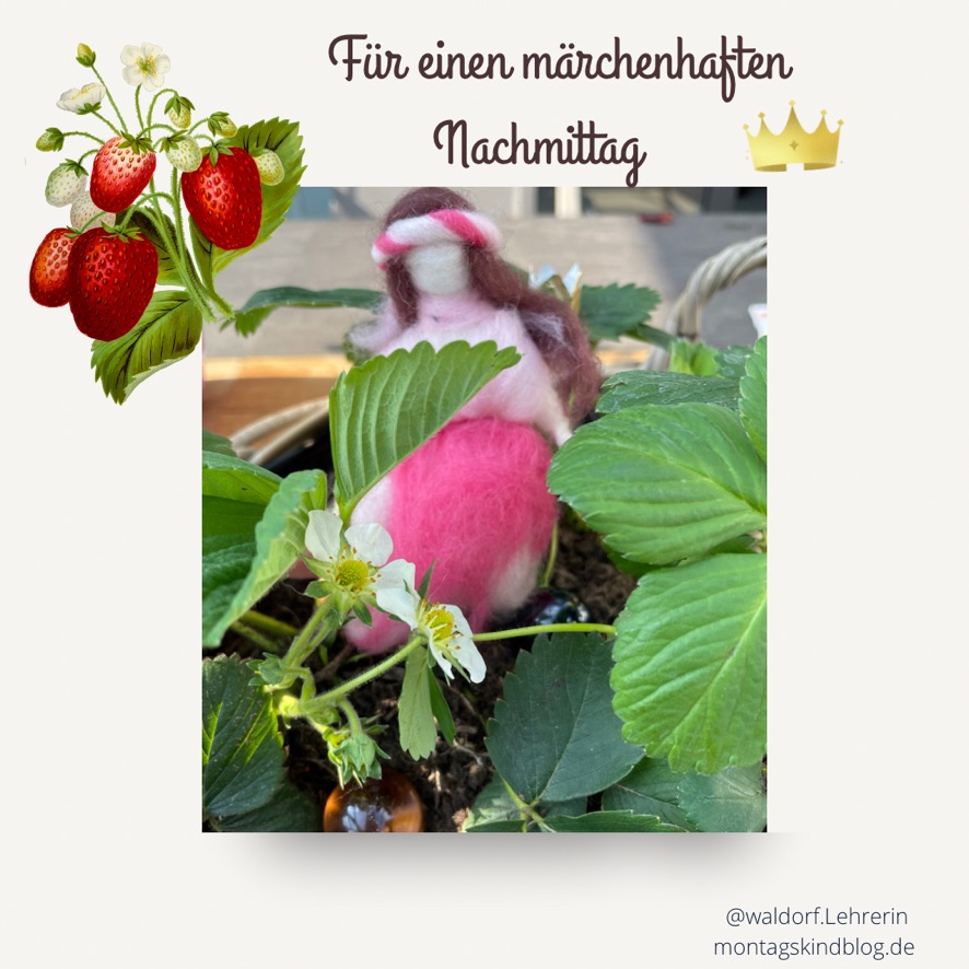 Pflanzt gemeinsam Erdbeerpflanzen in eine Schale und dekoriert sie mit Schätzen und selbstgebastelten Details, die zu dem Märchen passen. Ein ganz besonderes Schaffen! Das Ergebnis sieht nicht nur schön aus, es erinnert auch beim Pflücken jedesmal daran, dass es so viel Magisches, Unsichtbares, Märchenhaftes gibt!